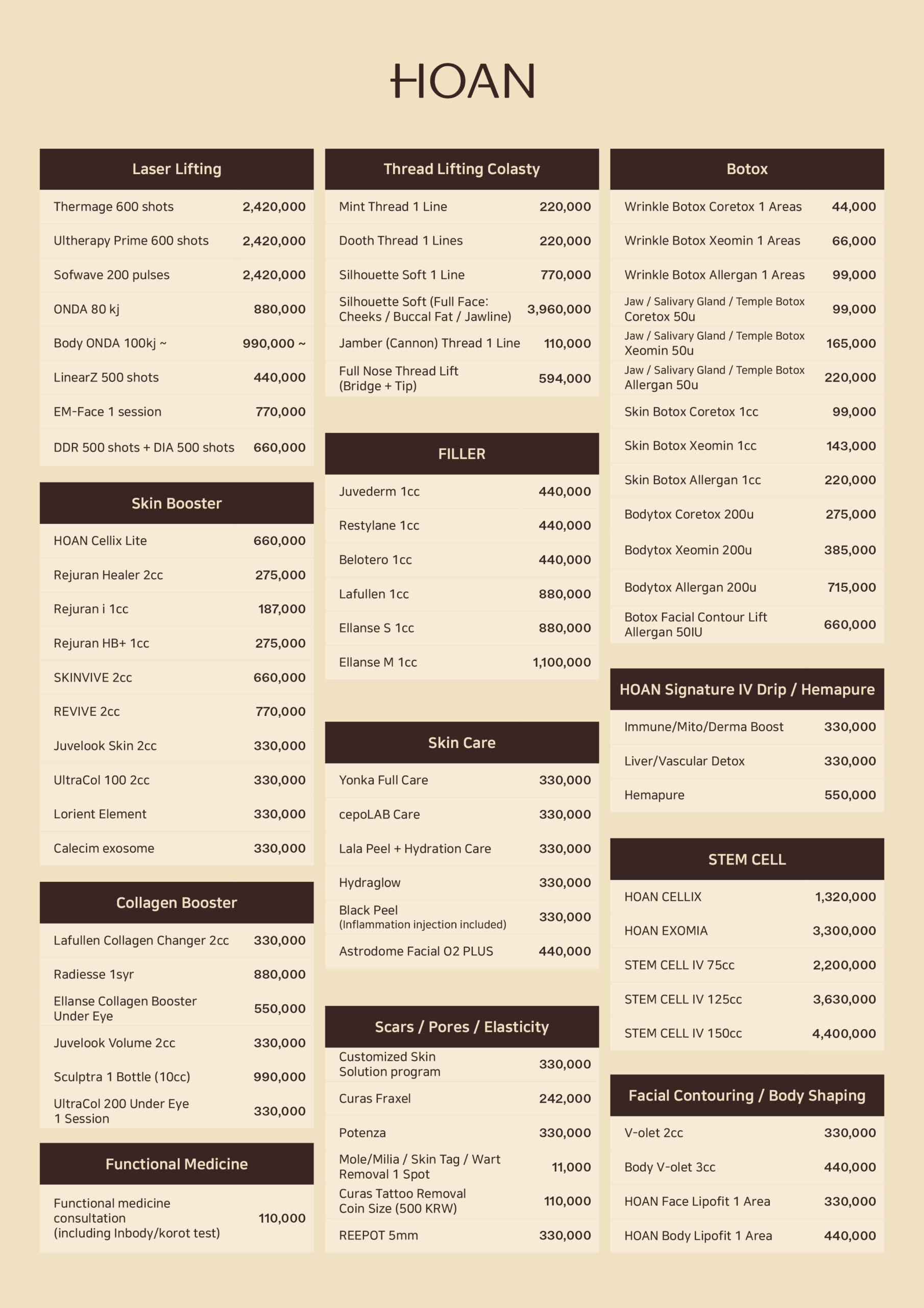 Treatment Price Information
